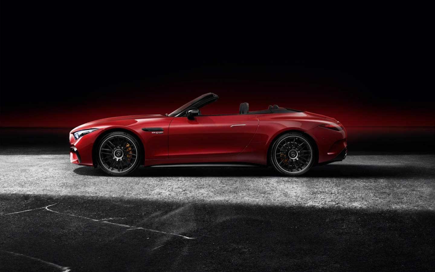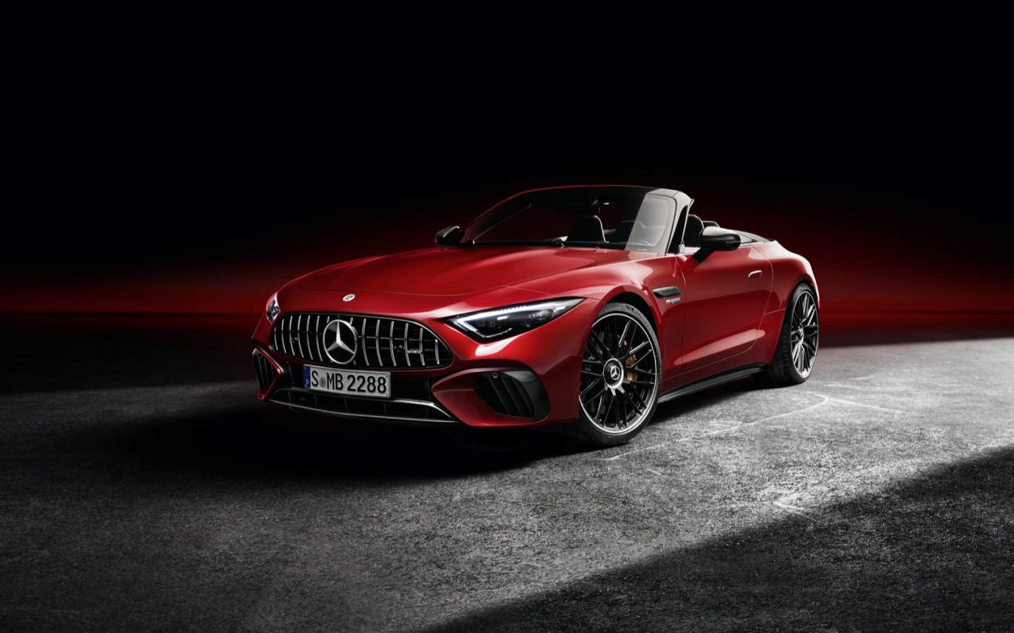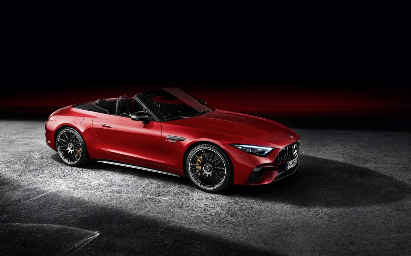 In the 2022 AMG SL 55 that's tuned for 469 hp and 516 lb-ft of torque, enough for 0 to 60 mph in an estimated 3.8 seconds. The 2022 AMG SL 63 upgrades those numbers to 577 hp and 590 lb-ft of torque, trimming the 0-60 mph time to an estimated 3.5 seconds. For the first time in SL history, AMG will be using AMG Performance 4MATIC+ all-wheel drive, too.