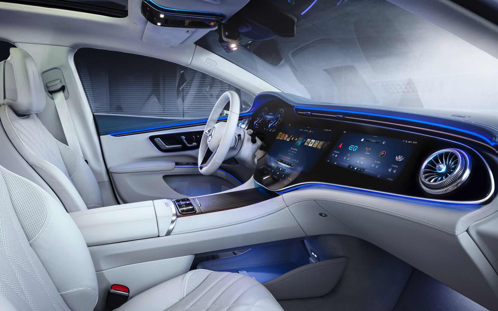 Depending on the configuration, the 2022 EQS has up to 350 sensors to monitor almost everything under the sun, both inside and outside of the car. That includes distance, vehicle speed, lighting conditions, precipitation and temperature, seat occupancy, and even the driver's eye movements.