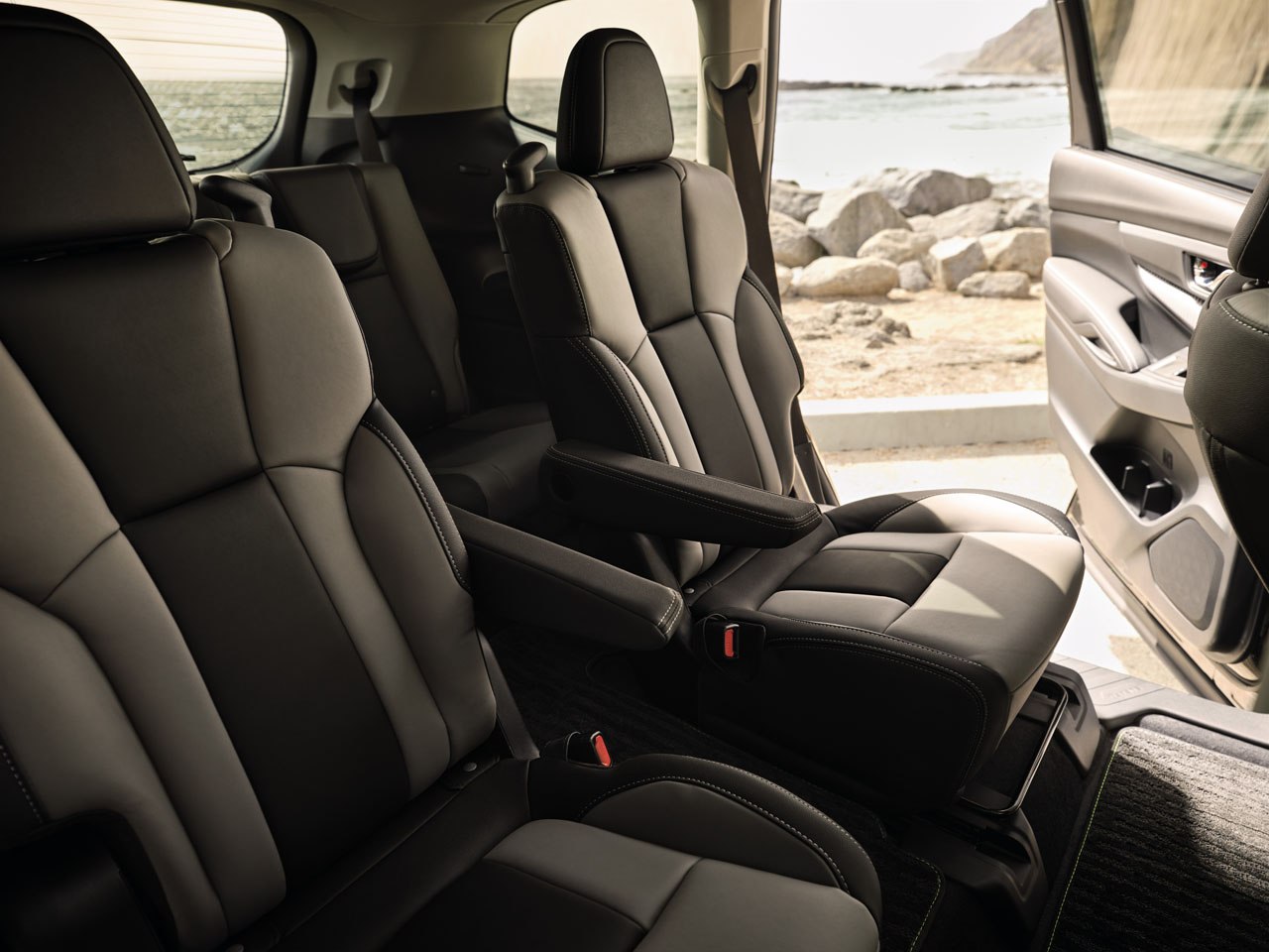 The Onyx Edition has an exclusive black-finished exterior trim and unique interior design details. Onyx Edition starts at $37,995 and features black-finished exterior elements, badging, and 20-inch alloy wheels. Inside, the seats are covered in Subaru StarTex water-repellent material. Subaru notes that the Onyx Edition builds on the seven-seat Premium trim and adds standard reverse automatic braking, power rear gate, heated steering wheel, keyless access, and push-button start.