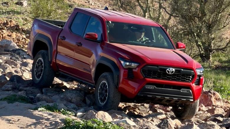 Next, we were shuttled off to test the off-road capabilities of both the 2026 RAV4 and various flavors of the 2026 Tacoma. At the helm of the RAV4, we crawled down a rocky trail using the crossover's hill descent control feature, which is essentially cruise control for going down a hill. We also tested the anti-lock braking system on a simulated wet road. From my short time with the RAV4, it did what it said on the box: the RAV4 was confident when the road surface was not.