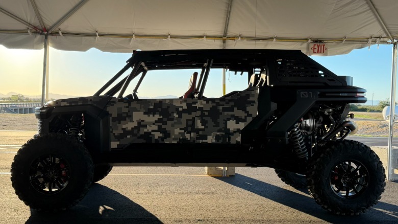 The gear lever is right from a Tacoma, the brakes are from Toyota GR sports cars, and so on. I didn't get to sit behind the wheel unfortunately, but I did see it rip around a dirt track ever so briefly. The Scion 01 Concept is similar to the aforementioned Polaris RZR in shape and overall purpose — that is jumping and racing around dunes as fast as possible — but the execution couldn't be more different. The Scion's hybrid powertrain gives it an EV mode that allows riders to use electric power. The extra torque imparted by electric motors is also a plus.