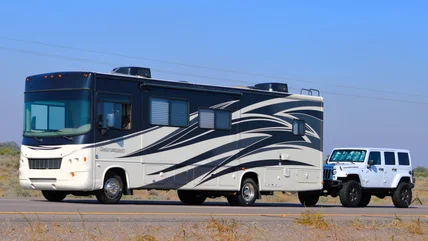 Some budget-friendly camper vans, like older Thor Motor Coach models, can pull a towed vehicle, but you might be a bit limited. A 2025 Thor Scope, for example, has a GCWR of 11,500 pounds, and the vehicle itself has a GVWR of 8,550 pounds. Keep in mind the 80% rule for towing, which essentially says you shouldn't max out your vehicle's limits, even if the numbers technically add up. Some other numbers to be aware of? Towing can affect gas mileage and range in any vehicle, so pulling a car behind your motorhome could cost you more than you expect.