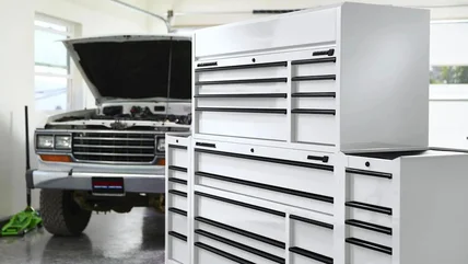 Reviewers report U.S. General's cab rolls even when fully loaded, despite holding up to 4,400 pounds and offering 23,500 cubic inches of storage. It includes large-width drawers, one of which is specifically designed for power and air tool racks (sold separately). Other drawers are suitable for sockets, hand tools, and more. The tool chest is designed to be modular and fit with other U.S. General Series 3 storage solutions. It also comes in several different colors so you can have a unified garage aesthetic.
