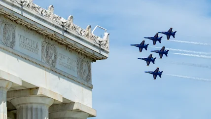 Of course, not every fighter jet you see in the skies above D.C. is out on maneuvers. There are, after all, several professional and collegiate sports teams that play in the area, including the Washington Nationals, the Washington Commanders, and the University of Maryland Terrapins. That means it's entirely possible that the jet you see overhead is on its way to perform a flyover for fans. On top of that, the Navy's famed Blue Angels aerial team pays regular visits to the Naval Academy in Annapolis, even performing annually during the Academy's Commissioning Week.