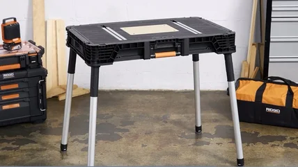 Home Depot owns the Ridgid tool brand and markets the tools as an upper-end prosumer selection. Ridgid offers a full line of corded and 18-volt cordless power tools for mechanics, construction workers, and DIYers. The $100 Ridgid portable work table is a relatively new product among Home Depot's lineup of workbenches and tables that's getting some pretty high praise from those that own it.