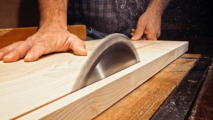 When cutting pieces of wood length-wise, you need to take extra precautions. As you slide the piece across the blade, the weight will shift away from you as more wood moves to the opposite side of the table. Toward the end, the wood is likely to angle up toward you or even kick back.
