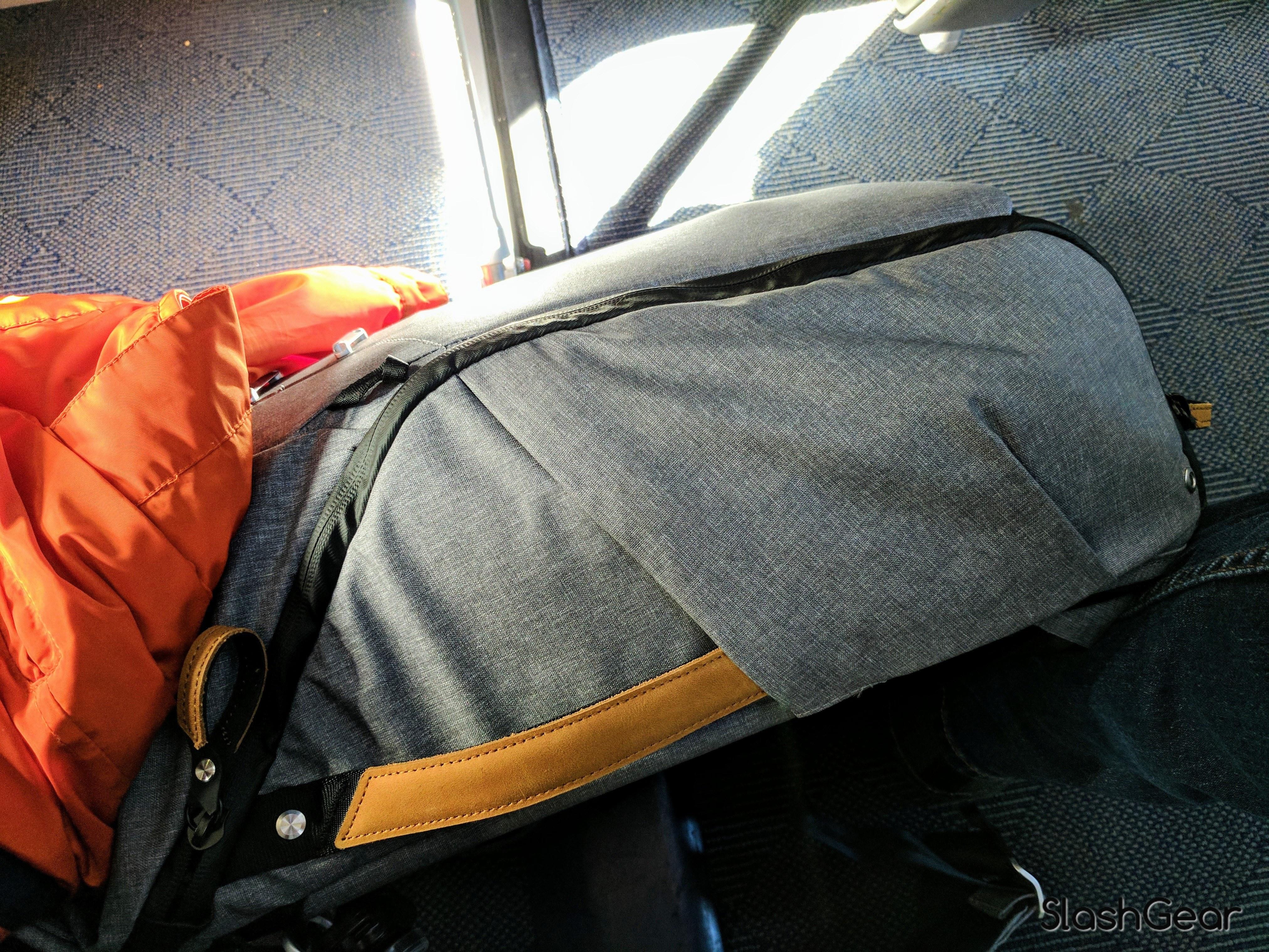 On the other hand, if I'm bringing a roller-board case, for instance a Porsche Design rollerboard (exact name), I'll bring the Ash color-version of the of the 20L backpack. It's a matter of personal taste, but I prefer the Ash over the darker, charcoal trim. The material on the Ash version is lighter in color too, giving it a dressier, suit-like appearance. It's also weatherproof, meaning that the zippers are sealed and the outer shell is water-resistant. In the event that it rains, you can trust that your gear will remain dry for a short period until you can get under cover. That came in useful when I was in Malaga a few months back to drive Audi's new TT RS, when out of nowhere, the sky turned dark and thunderous, and a sudden downpour caught everyone by surprise. Even though it took time to get from the pit area to the garage, my gear remained dry. Meanwhile, since water-resistance needs to go hand in hand with sturdiness, the outer shell is made up of a Kodra Weave. It's super-durable and should be more than adequate to keep up with an active lifestyle.