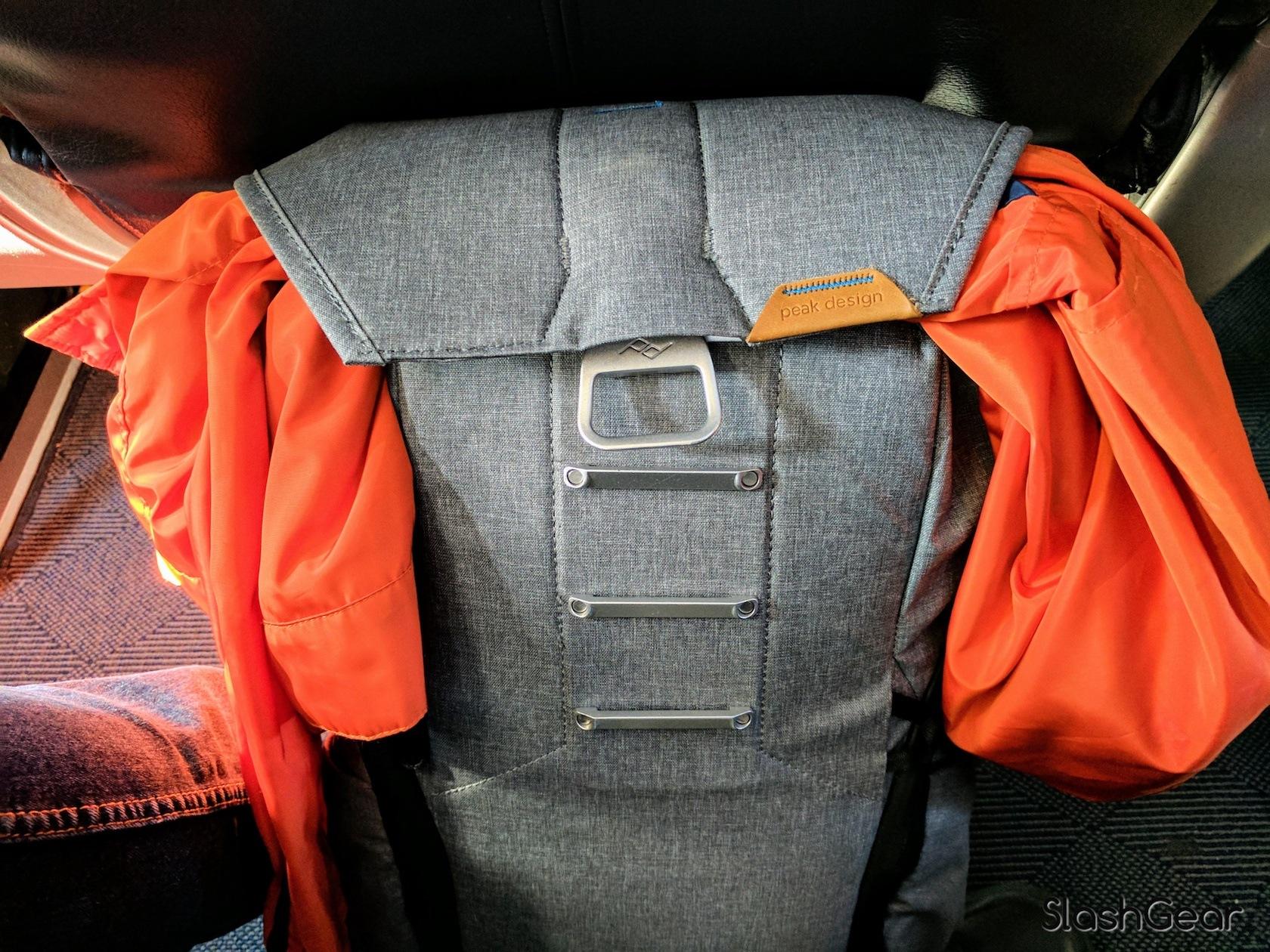 For photographers, it means that you can securely store, carry, and have quick access to your cameras and lenses. In addition to accessing everything from the top, Peak Design gives you zippered flaps on both sides of the bag. Each unzips from both top and bottom, revealing more compartments for spare batteries, a passport, or anything else you might want to keep safe. On the outside, there are multiple tethering cables to attach a drone, your jacket, or whatever else wouldn't fit inside.