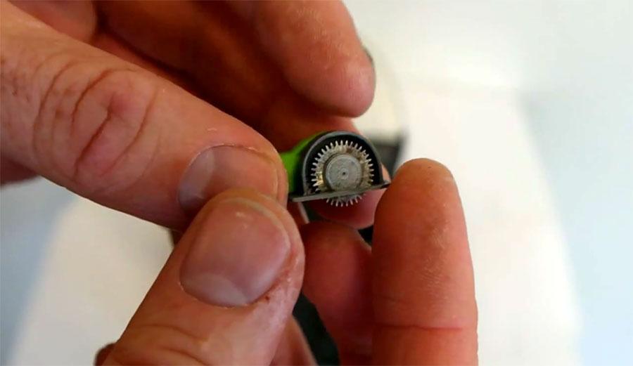 It's unclear exactly what sort of electronics are inside the tiny circle saw to make the blade spin. Abernethy says that he will be back with plans for parts that people can download and print to build their own tiny devices.