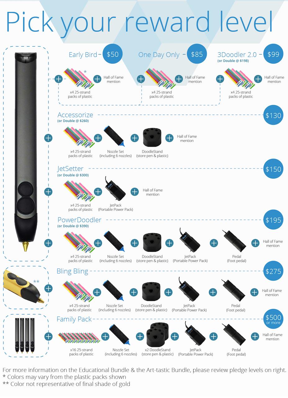 instead, the intention is apparently to reward early-adopters of the original 3Doodler to get in first, and v2.0 is expected to ship – for the first hundred units, anyway – within a month of the project launching. Early-bird pricing kicks off at $50, the Day 1 Community Special will be $85, and those who don't get in on the first wave should have their pens by April 2015, the company claims.