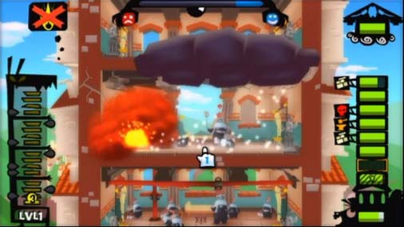 First there's Gods vs Humans, playable by 1 or 2 players, rated E for everyone, costing 1,200 Wii points. Play as gods from mythologies from Scandinavia, Egypt, Rome and Japan, ruling over humans who would obey – those rebels who would defy you, you must crush! But don't kill them, you need the humans to believe in you in order to win. Sixteen gods to be, 4 bosses to beat, 60 levels to play, 16 bonus challenges to meet. Solo or split-screen two-player mode.