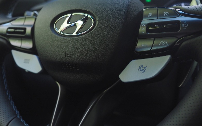 Then, Hyundai mixed things up. The stick was staying, don't worry about that, but there'd be an optional 8-speed, N-branded wet dual-clutch transmission. An automatic, yes, but a sporty automatic, one with paddle-shifters for those times you want to take over, but the ability to leave it to switch cogs itself when the route is more mundane.