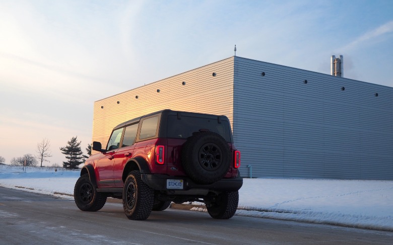 Overall, it's the balance of heritage with modernity that stands out. The Bronco looks, and feels, fun. The design is charming and practical; I loved how easily its tough rubber mats and sturdy leather-trimmed vinyl seats shrugged off Michigan snow and mud. The 35.6 cu-ft of cargo space (in 4-door hard-top form) is decent, and easily accessed with a side-swinging door and lifting glass; the rear bench is spacious enough for adults and sturdy enough for boisterous pets.