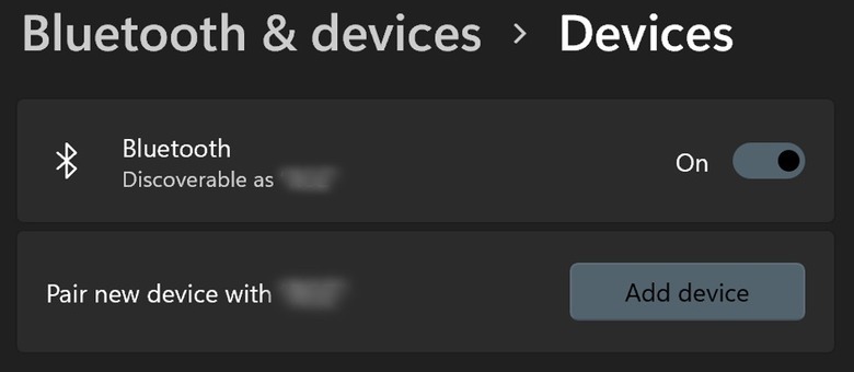 Doing this will open the Bluetooth settings menu; click the toggle button next to "Bluetooth" to turn the feature on, if necessary, then click "Add Device." As long as the headphones' noise control button was pressed long enough to trigger the white flashing light, the device should appear as AirPods Max in the list of devices. Click the device in the list to pair the headphones with the PC.