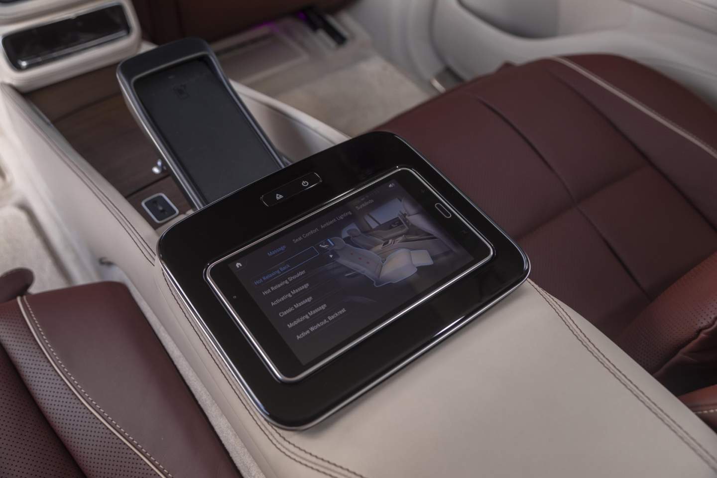 It's more successful the more budget you have. Soft-close doors, multi-color ambient lighting, heated and cooled massage seats front and rear, a Burmester 3D Surround Sound system, panoramic roof, 4-zone climate control with fragrance system, and leather are all standard. So, too, is Mercedes' solid infotainment system, across twin 12.3-inch wide-aspect displays and with touch, trackpad, and voice control.