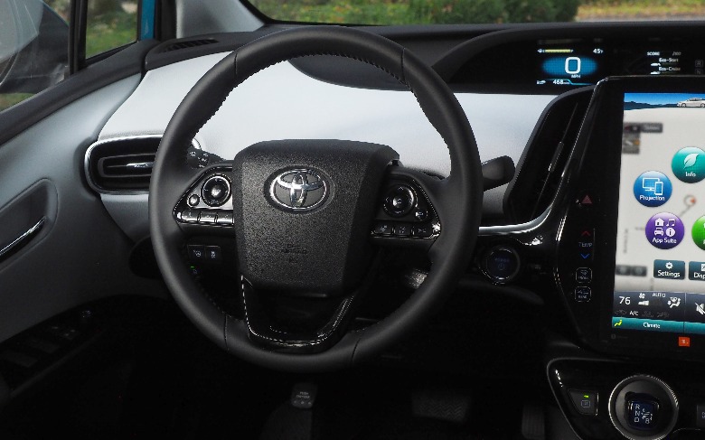 Though the transmission shifter may be weird, it's only one part of a decidedly avant-garde cabin. That's been the Prius way from the outset, with the Prius Prime throwing in a sizable infotainment touchscreen along with the central row of gauges that bulges up from the top of the dash.