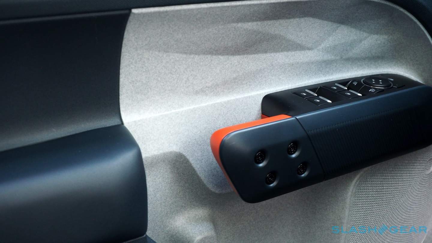 The door and dashboard plastics, for instance, include a blend of carbon fiber regrind – usually a waste product – and they wisely skip the (usually unconvincing) leather-effect pattern. 3D surfacing gives the panels more visual texturing, and rather than cover up screws and fixtures with fiddly, expensive-to-produce covers and caps, the Maverick designers simply made the screw heads more attractive and left them exposed. Cutaways in the doors allow full-sized bottles to stand upright, or bikes to slot in: you can fit a bike with 24-inch wheels into the rear of the truck, without having to take either wheel off.