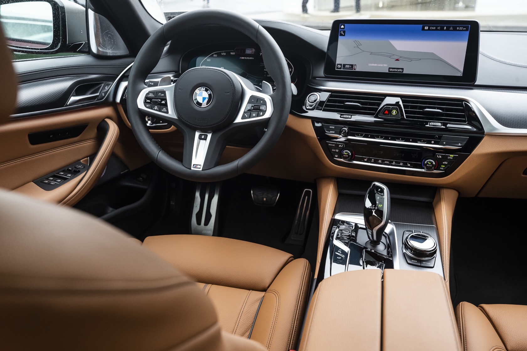 The M550i has BMW's xDrive AWD system as standard, too, and will typically bias toward the rear wheels unless traction demands otherwise. It has an M Sport Differential, Adaptive M Suspension with electronically controlled dampers, and M Sport brakes, but not some of the fancier handling features of the M5. Then again, it starts at $76,800 (plus $995 destination) whereas an M5 will set you back $103,500 before destination.