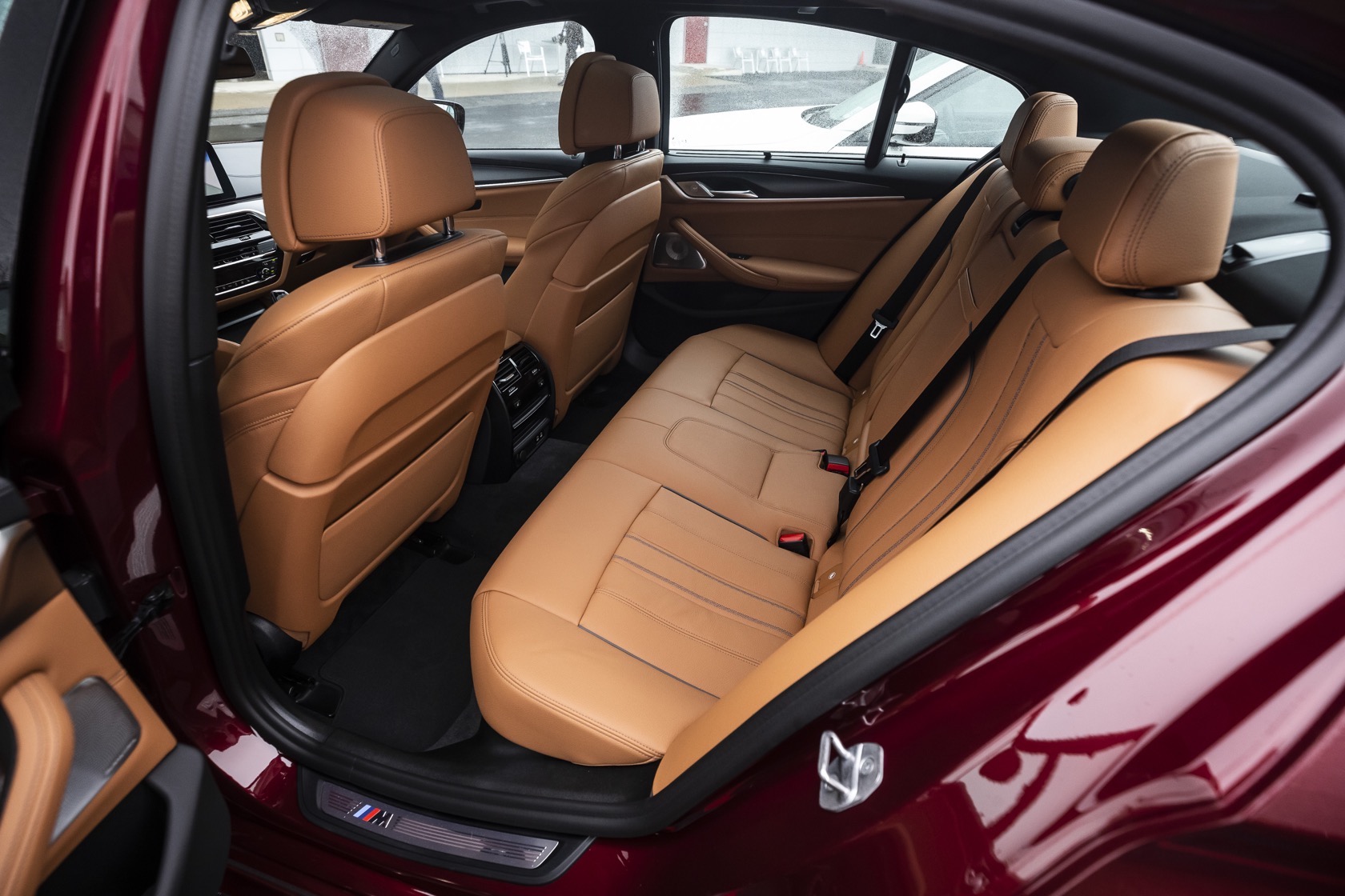 In the rear there's plenty of space for two adults, with the center seat more child-proportioned. The trunk gets a reasonable 14 cu-ft to play with, expanding with the 40/20/40 split rear bench if required. Sure, you'll get much more cargo space in an SUV like the 2021 X5 M50i, but you'll also go slower and use more gas. The EPA rates the M550i for 17 mpg city, 25 mpg highway, and 20 mpg combined, and as long as you're not driving too eagerly they're fairly easy numbers to hit.