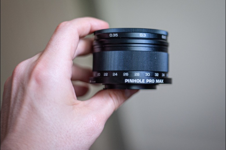 One of the main selling points of the Pinhole Pro series over cheap or home-made alternatives is the fact that these lenses are made using machined aluminum, with precision-drilled apertures. It definitely gives the lens a sturdy, premium feel, and the impression that it will be able to last a long time. However, we would like the engagement on the zoom ring to be smoother. It takes quite a bit of effort to move throughout the focal range, and feels like it could use some extra lubrication. Instead of adjustable aperture blades, the Pro Max uses a revolving selection of pre-drilled holes at the front of the body. There are 'hard stops' at each aperture setting, so the user knows when their selection is in place.