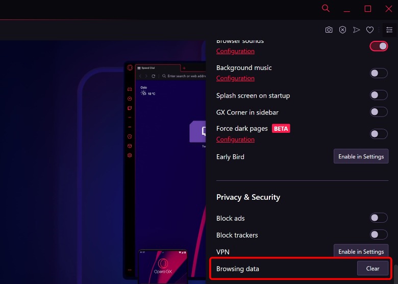 Clearing the browser cache is easy to do, but of course, you'll need to follow slightly different steps if you're using Opera GX on an Android device or iPhone.