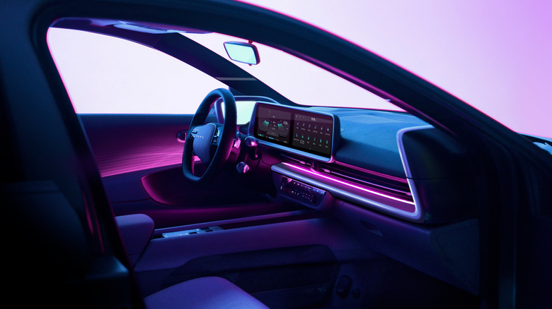 Hyundai also claims the IONIQ 6 has a "cocoon-like interior," and most of the controls appear to be electronic and positioned on the multi-information display as well as the entertainment unit in the center. The company also advertises the use of sustainable materials inside the cabin, including options between recycled PET fabric and eco-process leather for the seats based on the trim, a recycled fishing net carpet, and TPO skin for the dashboard. In addition, the paints used on the doors are also obtained from recycled vegetable oils.