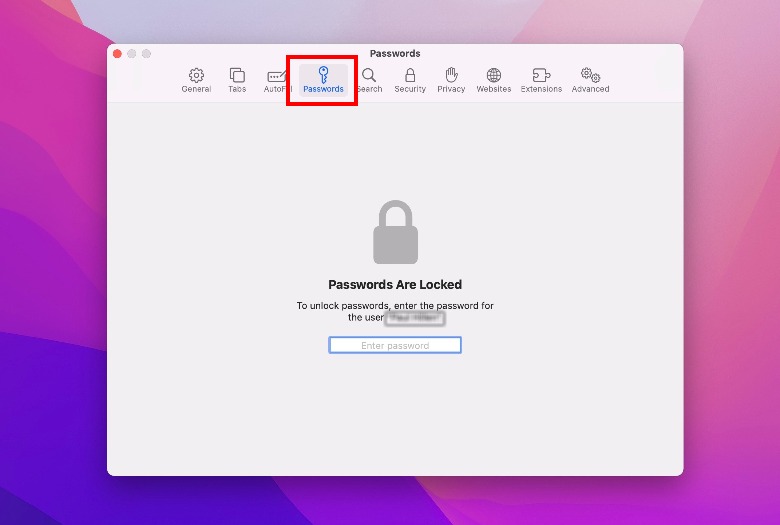 4. At this point, you'll have to enter your system password to access your saved passwords.