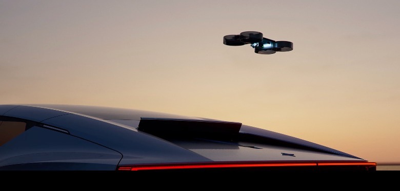 The drone can follow the vehicle at speeds up to 56 mph and flies through the air autonomously as you drive. Of course, the drone has unique cameras to capture the sights, and the driver can command it to snap wide-angle or sweeping photos using the infotainment touchscreen. "Integrating an autonomous cinematic drone was something that allowed us to push the boundaries on the innovation front. Not needing to stop and off-load the drone before filming, but rather deploying it at speed, is a key benefit to this innovative design," said Maximilian Missoni, Polestar Head of Design.