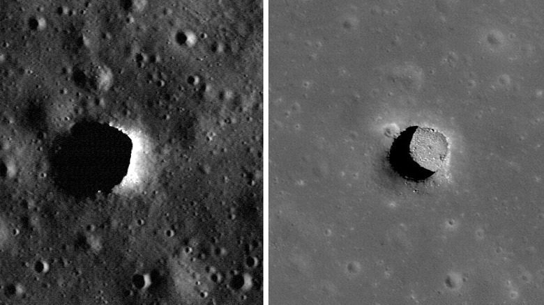 The moon is covered in pits, or shallow craters, which could be linked to underground caves called lava tubes. These lava tubes were formed when molten lava flowed beneath a harder lava crust, leaving a hollow tunnel behind (via NASA). And it is these pits and lava tubes that could provide shelter for future astronauts.