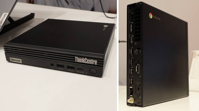 Lenovo also revealed a new Chromebox. This machine is the latest iteration of a line of similar machines from Lenovo, made primarily for business. With a whole heap of ports on the front and the back, this Lenovo ThinkCentre M60q Chromebox has the ability to support up to four monitors at once and runs on up to a 12th Generation Intel Core i5 chipset.