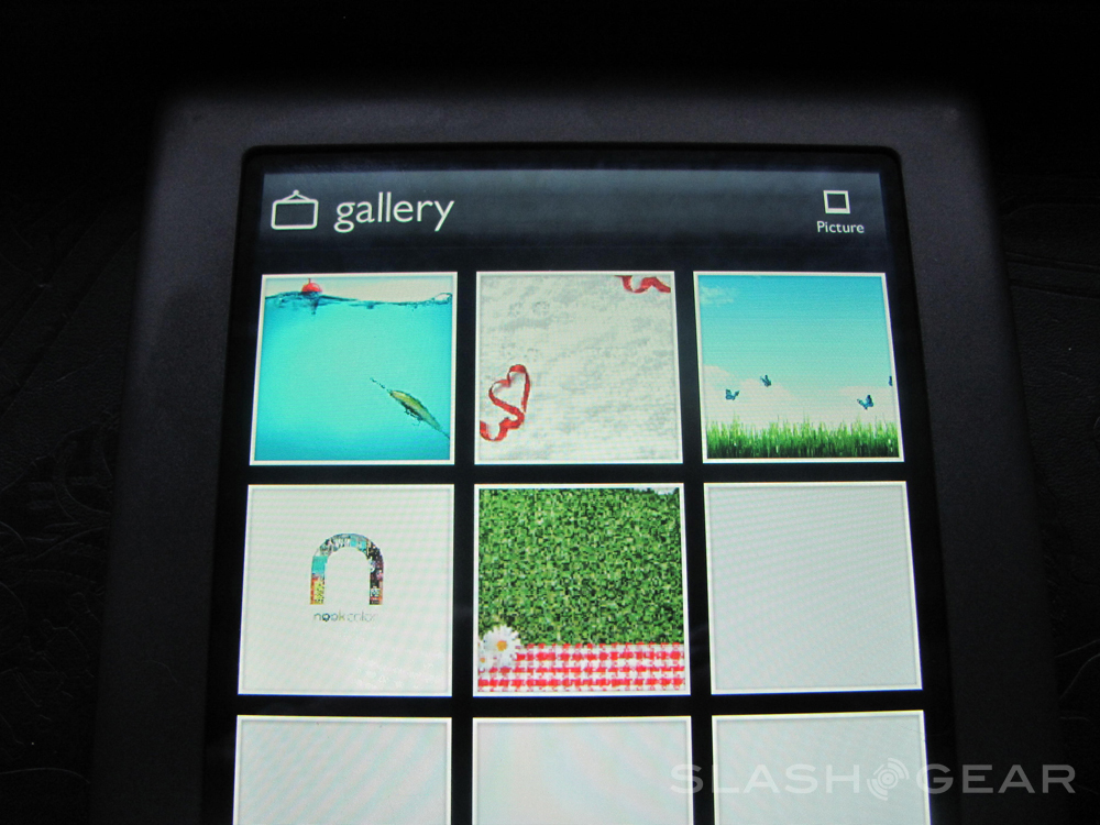 Gallery works in a very similar way, upon dropping a bunch of photos into your pictures folder when you've got NOOKcolor plugged into your computer, they show up here instantly. A great way to carry along a simple portfolio for all of us creative types? Perhaps.