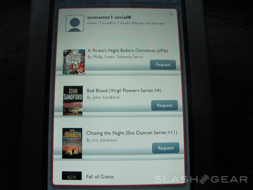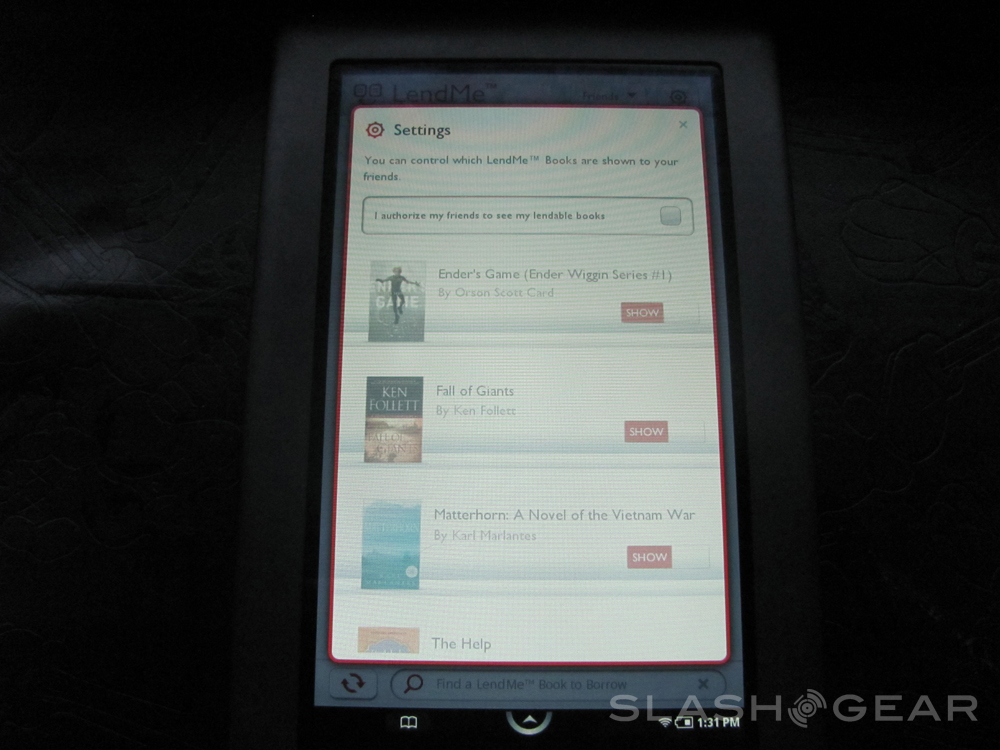 In your "Extras" tab, aka your apps folder, you'll notice instantly that these were never meant to be the main attraction. The name of the folder is "extras" – get it? This bin of everyday device mainstays like chess, Sudoku, and crossword enforce the fact that this device is aimed at those who read and enjoy games that live inside the reading universe. You'll also find a contacts app which contains people who also own NOOKcolors with whom you can interact with elsewhere (this app acts as a sort of flip-file of all your people, where you can add or subtract them and their info.) There's another app for LendMe (accessible also through your Library, as we spoke about in a previous post) where you can ask to borrow or lend books from and to your contacts.