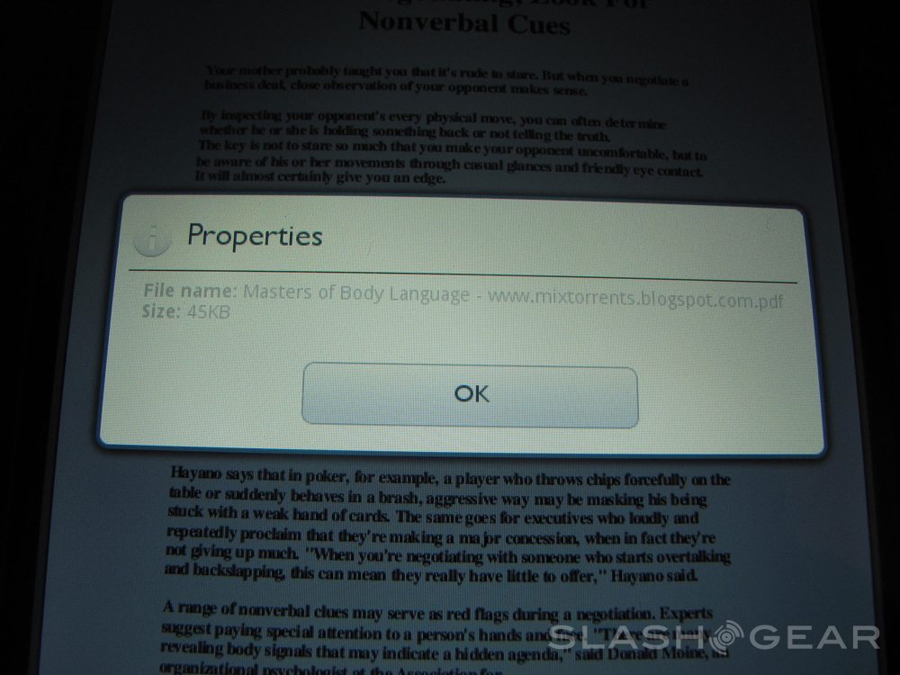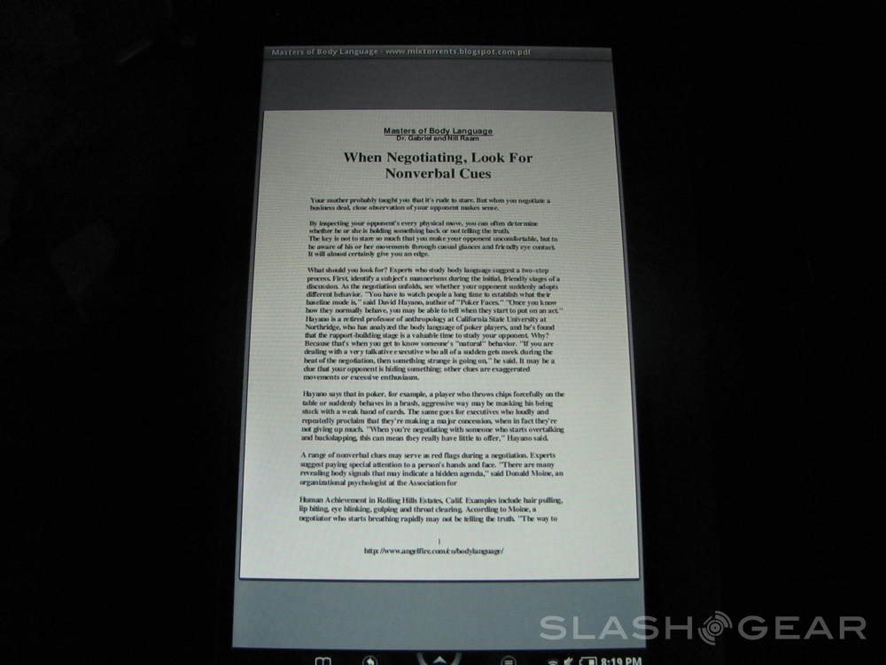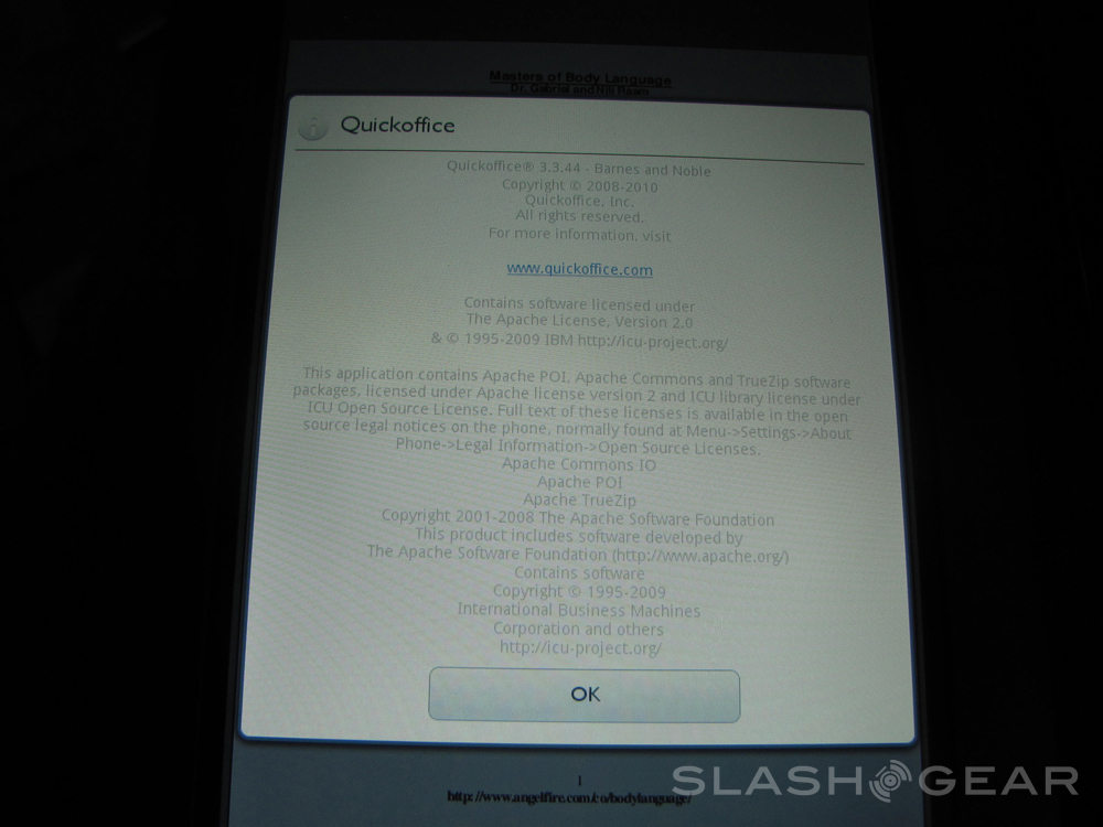 What About tells you is that you're not just looking at this document in some no-name document viewer – nay! You're viewing it in Quickoffice. It's Quickoffice 3.3.44 to be precise, and I'm sure it's directly to thank for the excellence found in this viewing of third-party documents. OH and also you can turn NOOKcolor on its side and view pages in landscape mode the same way you'd be able to if you were viewing a children's book or magazine.