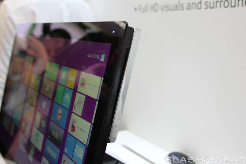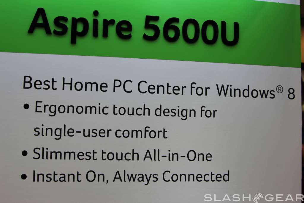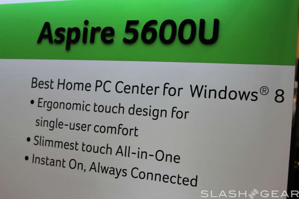 As for the 23-inch Aspire 5600U, Acer says it's the thinnest all-in-one PC around and it's certainly slimline. The low-profile stand is neat and the display is responsive. Windows 8's Metro UI really does make for a better AIO experience on a larger touchscreen than Windows 7 ever could before.