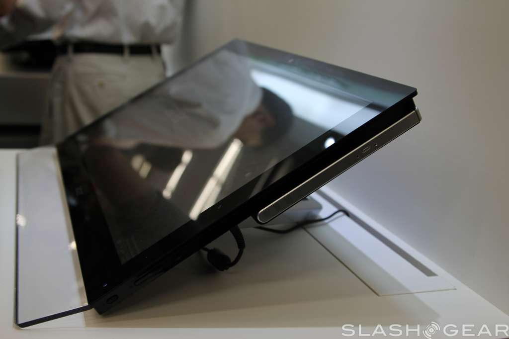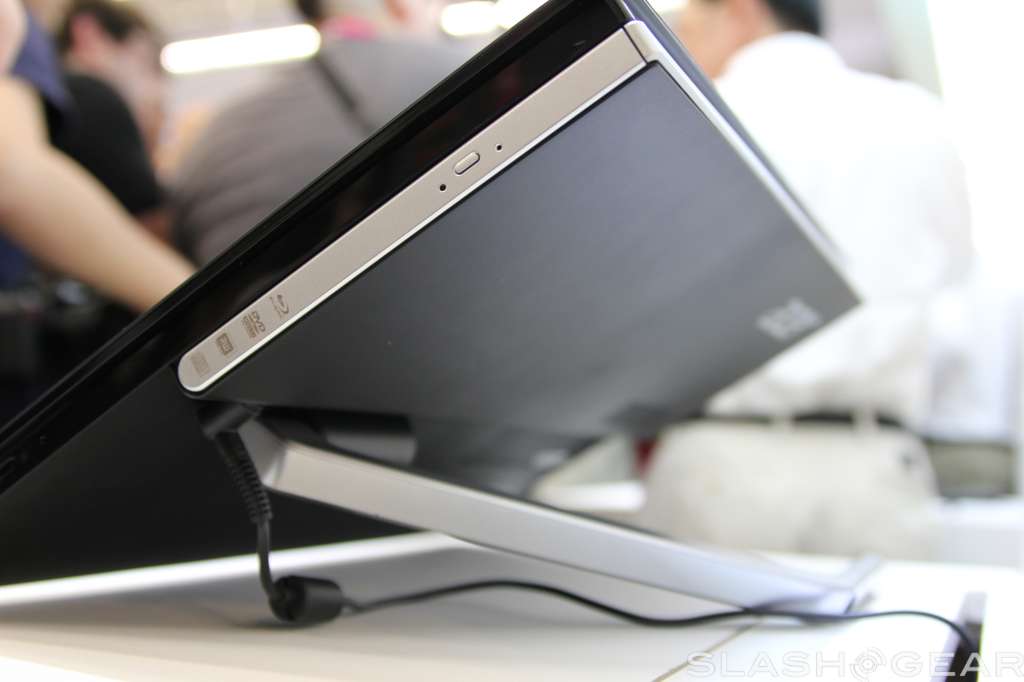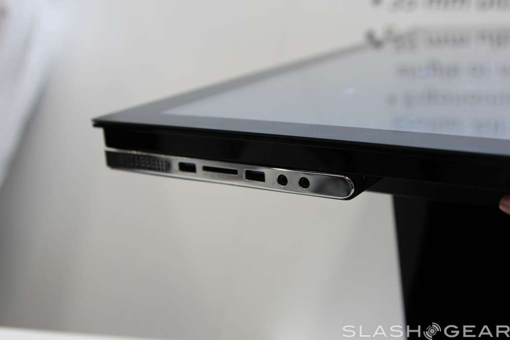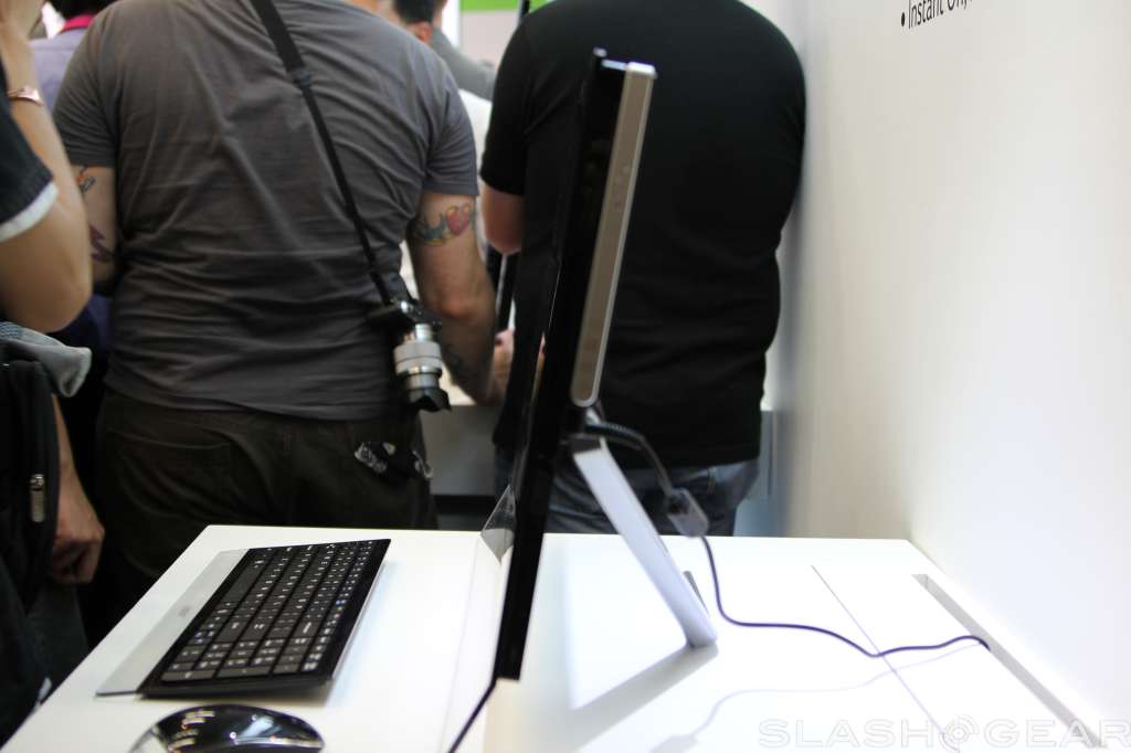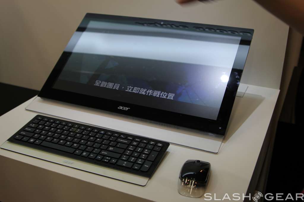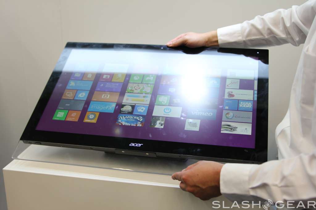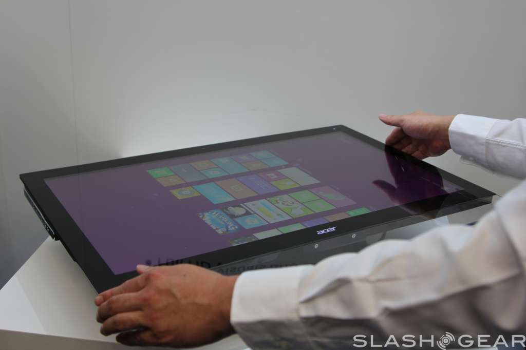 The 27-inch 7600U folds flat into a useful approximation of Microsoft's Surface multitouch table – with up to 64 fingers recognized simultaneously - though presumably a whole lot more affordable (Acer isn't talking pricing yet). The display is responsive and the hinge suitably sturdy to keep the tilt/swivel mechanism manageable.