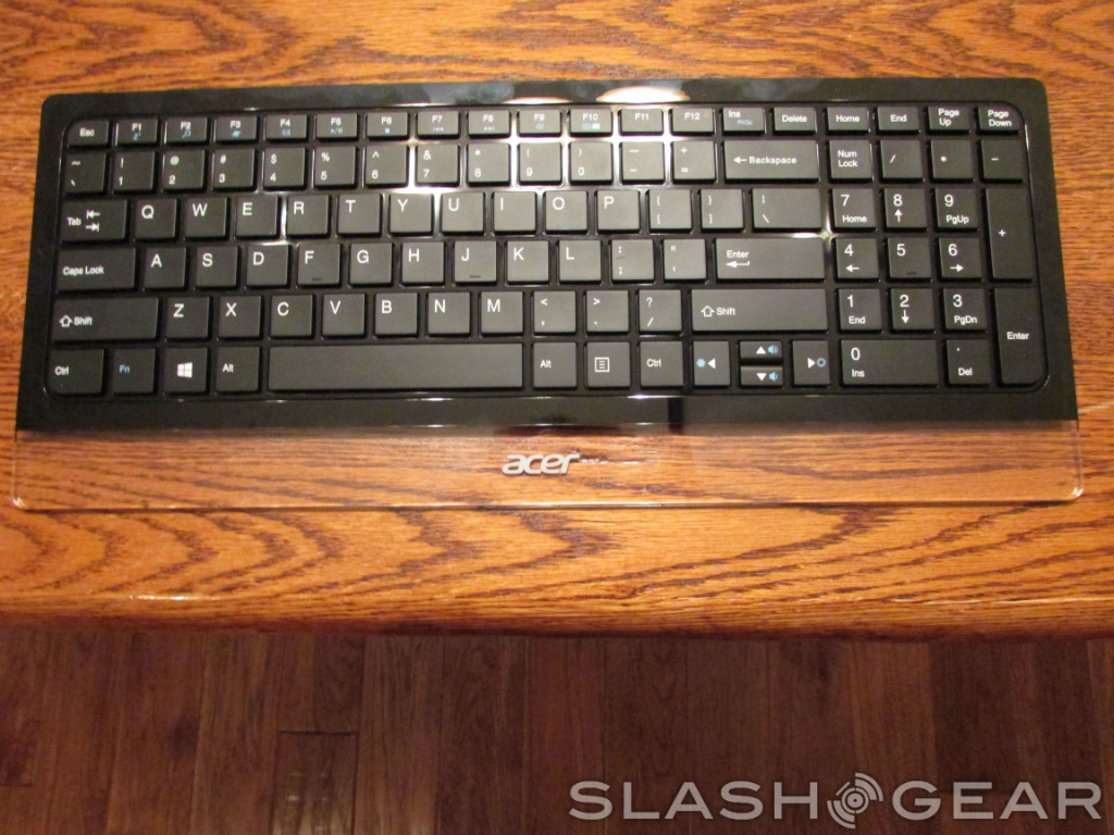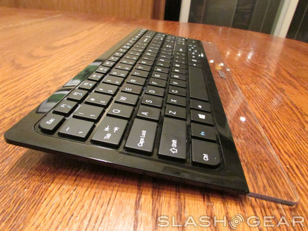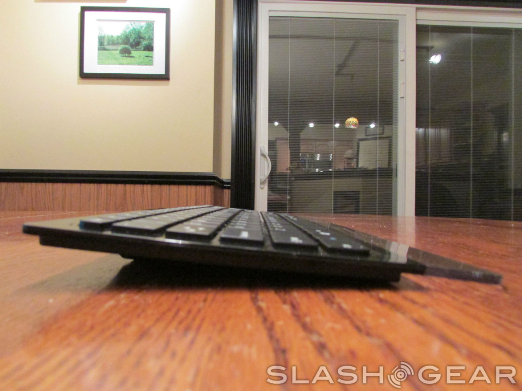 Let's jump back to the keyboard, which I think is a pretty nice piece of equipment. The keyboard for the 7600U is very, very slim, which makes it feel a little on the delicate side, but typing on it is a pleasant experience. On this you'll find chiclet-style keys we see on notebooks and ultrabooks, and these keys give off a satisfying sound when you hit them. The keyboard manages to pack in a full number pad while remaining quite small, which is nice. There was one small problem I ran into, though: the wireless on this keyboard seems to be a bit touchy at times. There were a few times I was trying to type something with nothing showing up on screen, but a quick adjustment was all that was needed to fix this issue.