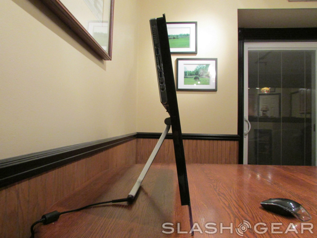 When I initially pulled the computer out of the box, I spent a good five minutes trying to find the power jack so I could, you know, actually turn this thing on. After looking all over the back and sides, I finally found it – it was on the end of the silver kickstand that's attached to this all-in-one. That annoyed me at first, but after a while, I came to love the idea. By having the power jack there, it keeps the power cord out of the way, which means that there will be one less cord to get tangled up in the mess you're bound to have back there before long.
