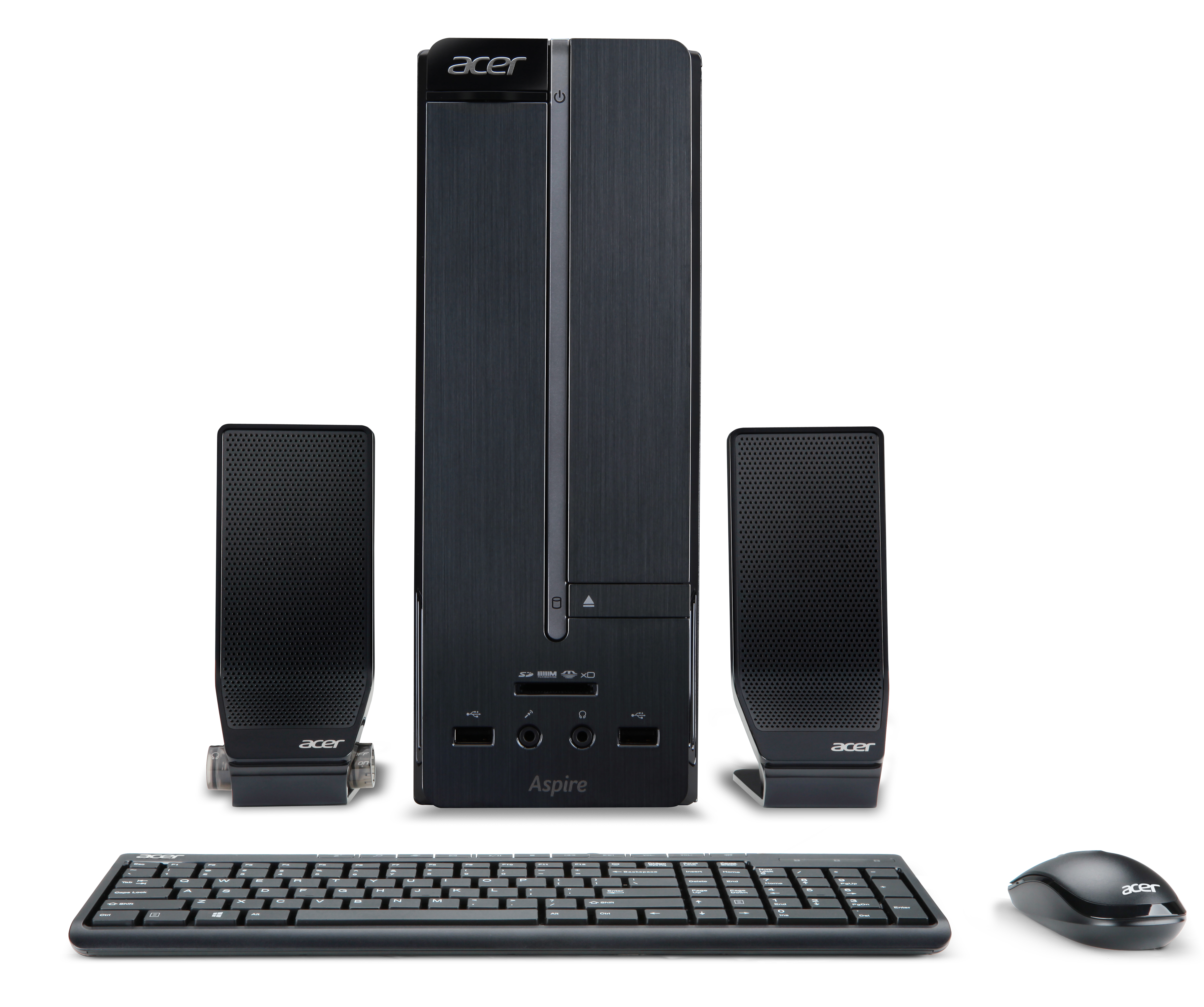 As for the Acer Aspire XC, that's a small form-factor desktop with a more humble Core i3 2130 processor and up to 6GB of memory, paired with up to 1TB of storage. HDMI and up to eight USB 2.0 ports are present, along with a front memory card reader, and there's 5.1-channel sound, just as on the larger machines.