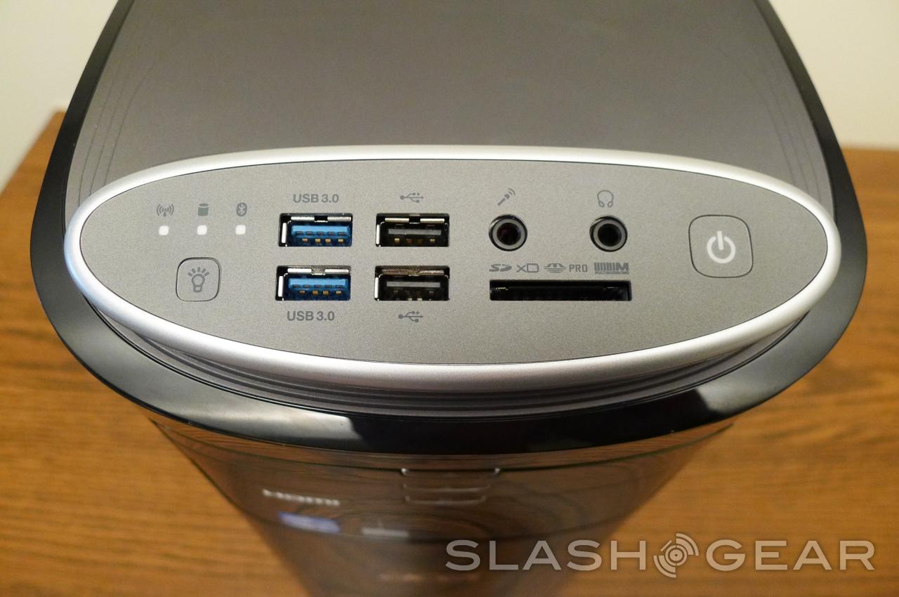 Design-wise, the ME600 isn't anything special to look at — it's rather bland actually, with a few unique design elements that make it stand out from the crowd, however. It's your typical mini-tower setup with bays on the front and easy-access ports on the top, with everything else you need around the back. The machine has four USB ports on top, two of which are USB 3.0, and there's also audio jack and an SD card slot. Overall, nothing too special there, with the exception that Acer likes USB 3.0, but isn't willing to exclusively go the way of the new transfer protocol.