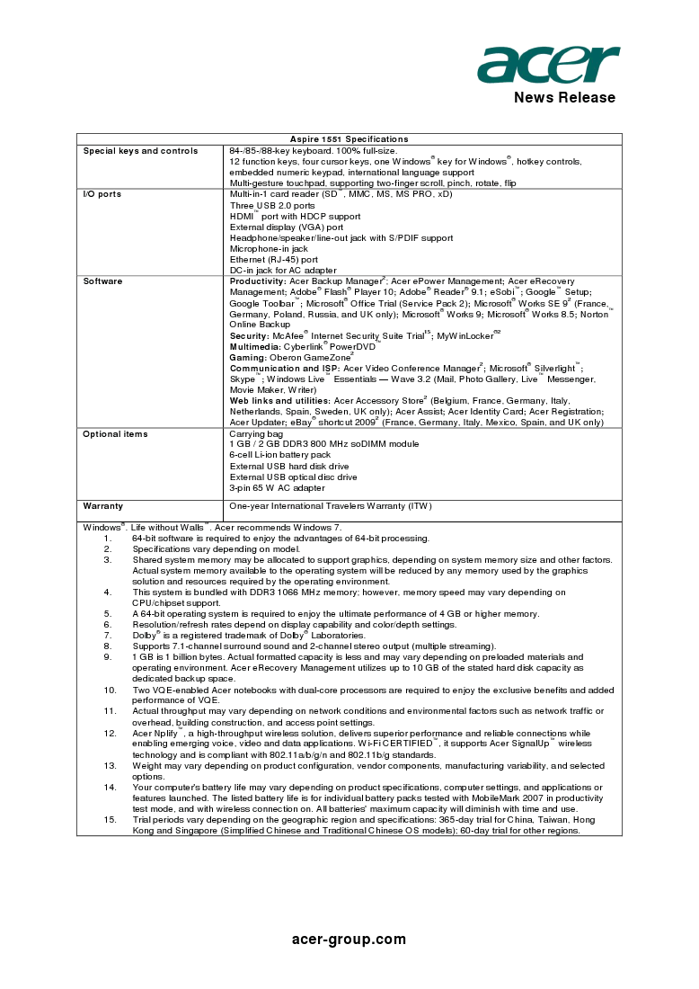 Acer Aspire One 521, 721 And Aspire 1551 Raid AMD's 2010 CPU Catalog