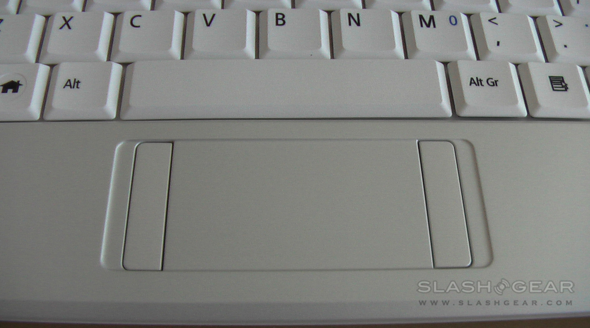 In all, aside from one notable point, the build quality and design of the Aspire One doesn't disappoint. That one contentious point is the touchpad or, more accurately its buttons. The slight depth Acer shaved off of the Aspire One required – or was fulfilled by – moving the left and right mouse buttons from their usual spot underneath the touchpad to flank it on either side, and for a regular laptop user it's a real challenge to get used to it. The left button no longer falls naturally under the right thumb when mousing, and requires either an awkwardly-twisted wrist or a switch to using the index finger. They're loud, too, and while we usually appreciate buttons that you know whether you've pushed, the Acer's tip over into sounding a little cheap.