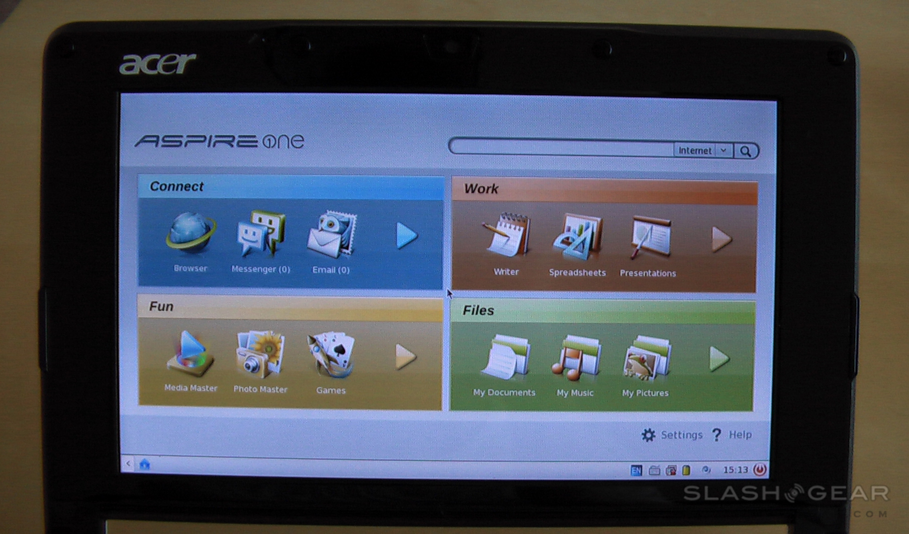 Like most other netbooks currently available, the cheaper Aspire One models use a Linux-based OS rather than the more familiar Microsoft Windows. In the Acer's case, the distro in question is Linpus Linux Lite, and while that might seem enough to send novice users running for cover it's actually one of the most usable netbook interfaces we've played with.