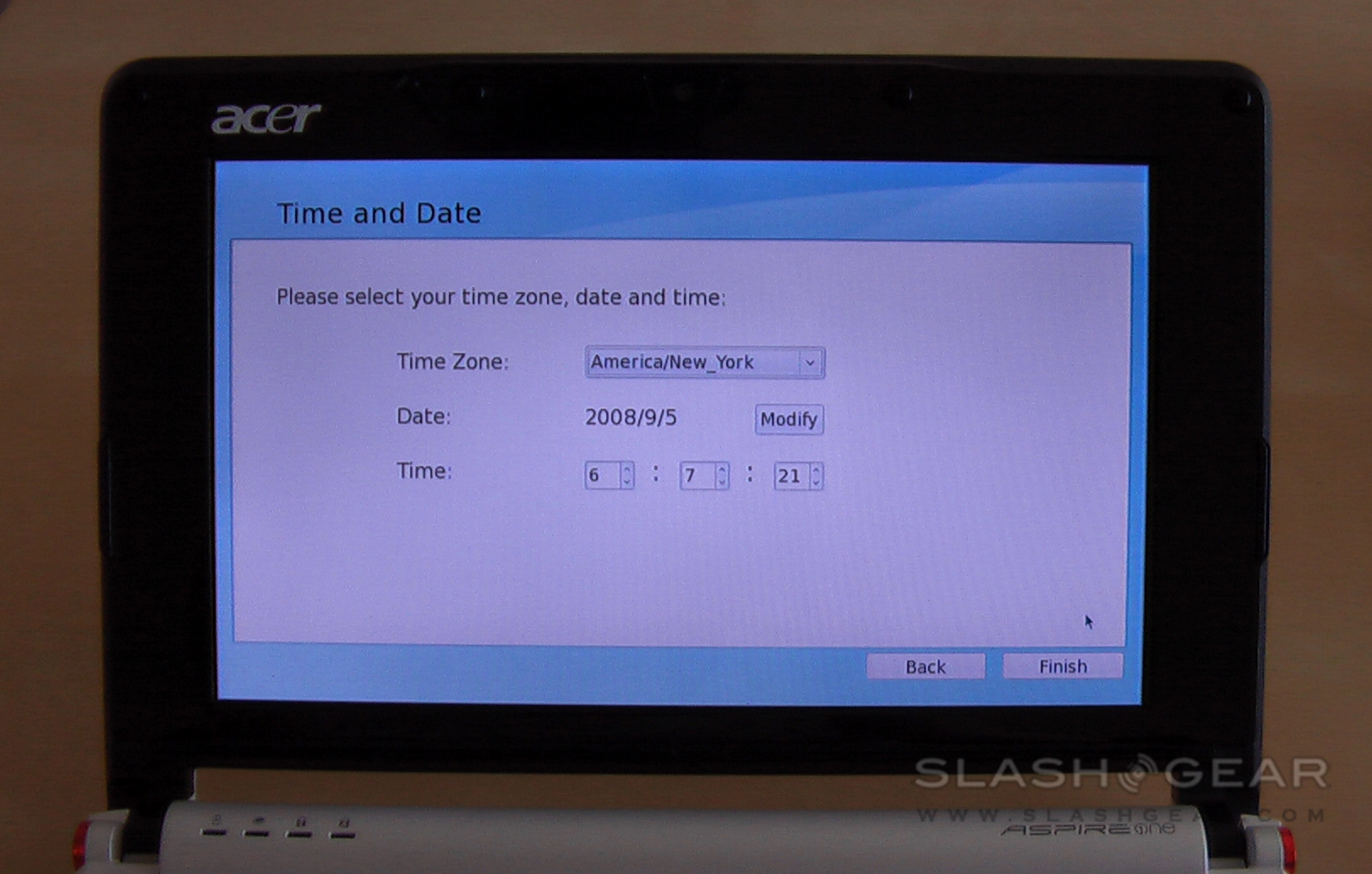Announced in June 2008, Acer offers multiple versions of their netbook. Each uses Intel's N270 1.6GHz Atom processor, but it can be paired with either 512MB or 1GB of RAM, and a choice of either an 8GB SSD or 120GB or 160GB hard-drive. Operating system is either Windows XP Home or Linpus Linux Lite, and there are several color options. Battery can either be a three-cell or six-cell pack.