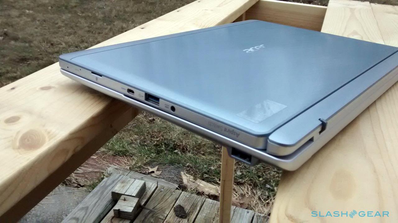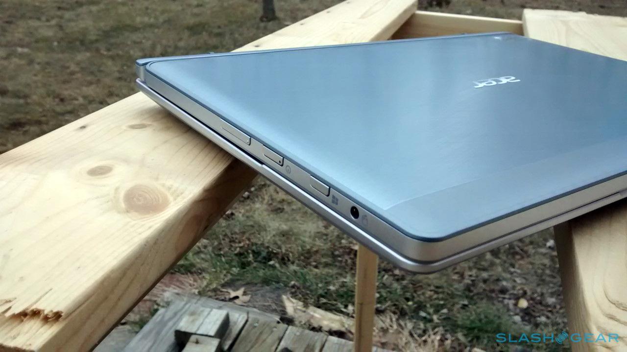 Because the tablet portion holds the hardware, the display is naturally heavier than the keyboard portion — something that also commonly causes problems when it comes to convertible PCs. The hinge is strong enough to hold the display in place with the Switch 11, however, and the heavy weight only becomes a problem when the display is positioned nearly fully open. If your wrists are resting on the keyboard, however, that becomes a non-issue. All of this is complemented by a very sleek and attractive metallic design.