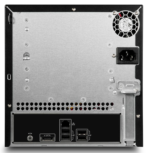 Windows Home Server is kept chugging along on an Intel Atom 230 1.6GHz processor, paired with 2GB of DDR2 RAM. Network connectivity is via a gigabit ethernet connection, and the whole thing measures 8.3 x 7.8 x 7.08 inches.
