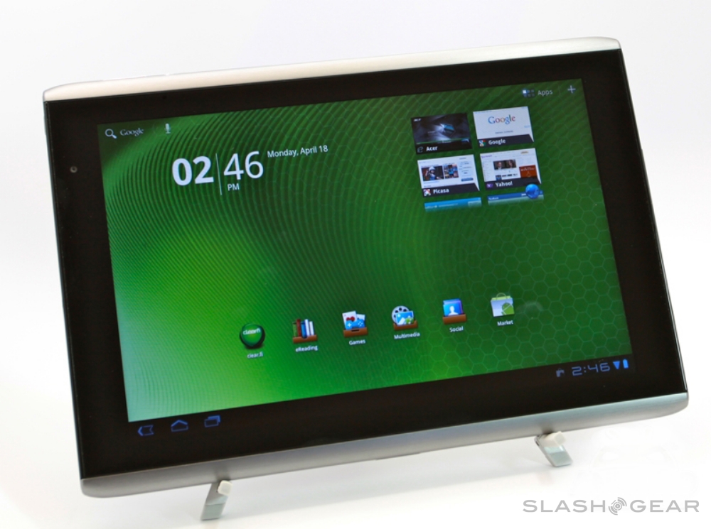 Welcome to the newest Android tablet on the block, Acer's Iconia Tab A500. This is an Android 3.0 Honeycomb tablet, that being a version of the Google mobile operating system made specifically for tablets, and it's got a big fat 10.1-inch screen. In the front there's a 2-megapixel camera for video chat and photos, on the back there's a 5-megapixel camera for video recording and photos as well. This is a device that will go in direct competition with the Motorola XOOM and the Apple iPad, with a bit of competition from the LG G-Slate, mostly because their dual-core processors come from the same parent: NVIDIA. Will this slice of aluminum carve its way into your Android loving heart?