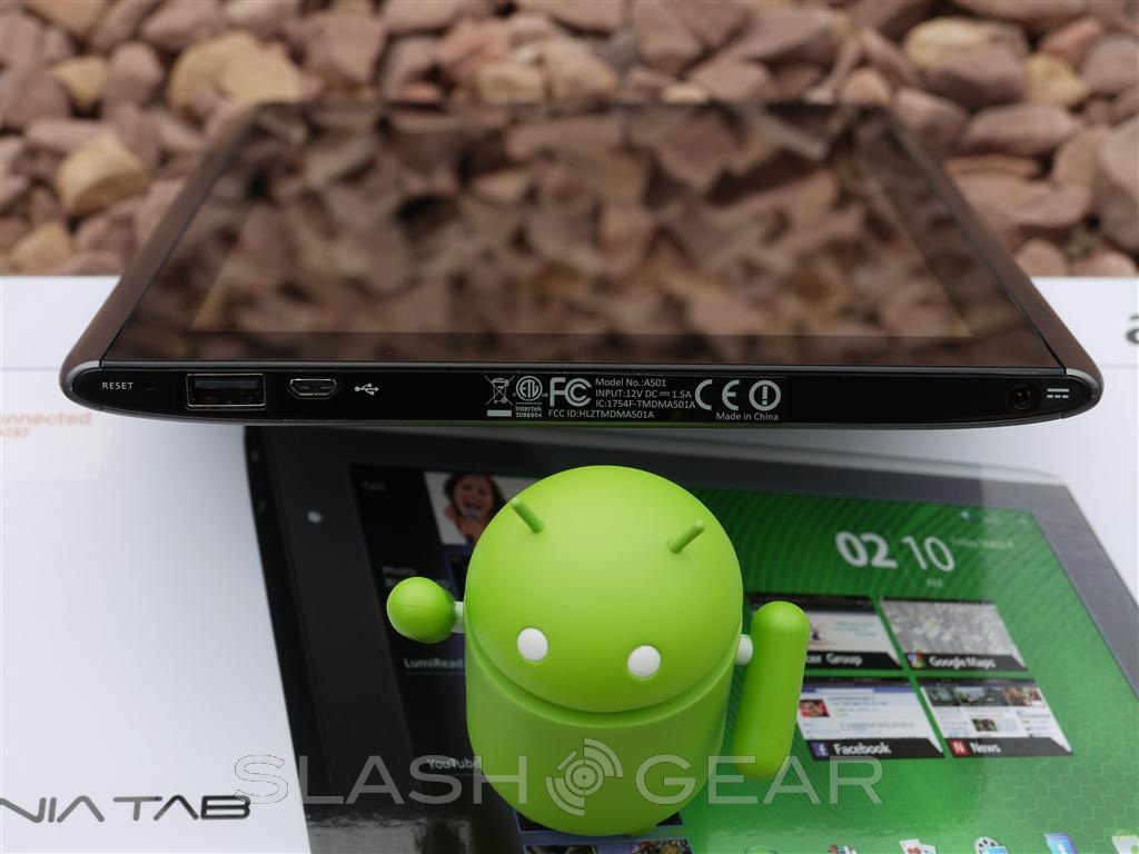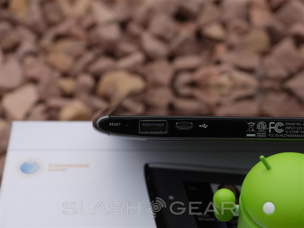 Like mentioned above, it might not be the thinnest nor the lightest but the input options make up the difference. We have a dock connector on bottom as seen in the photo up top, as well as full sized USB, micro-USB, and micro-HDMI pictured below. Then your usual power/wake and volume rockers and screen orientation lock. We have a full in-depth review of the twin brother the ACER A500 you can see here for more details. This is about the AT&T 4G so I've gone ahead and ran a few speedtests and I'll post those below.