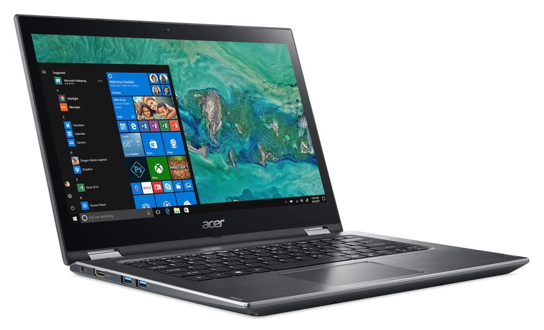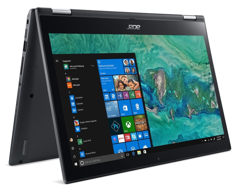 If you like the idea of the Swift 7, but need a full 360-degree convertible however, Acer has another new notebook for CES. The refreshed Acer Spin 3 (SP314-51) has now been revamped with 8th generation Intel Core processors, while the display has shrunk from the 15.6-inches of the old model to 14-inches on 2018's version. It still runs at Full HD resolution, and can twist around on the convertible's dual-torque hinges between laptop, tablet, and tent modes.