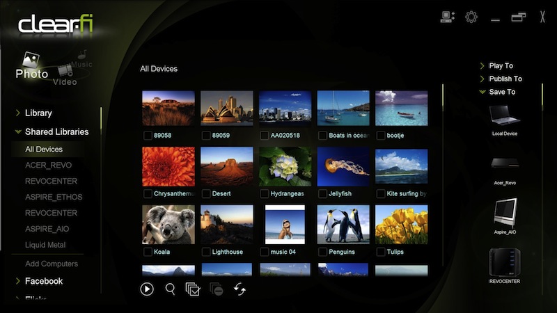 Clear.fi will automatically detect devices that are connected to the network, and from there you'll be able to start the streaming. Not only that, but you'll also be able to share/upload images from the network to social networking sites like Flickr, and Facebook. YouTube is also included in there, too. In concept, the idea is great, but it will only be when customers start using it, that we'll be able to find out how well Acer has made media streaming easier.