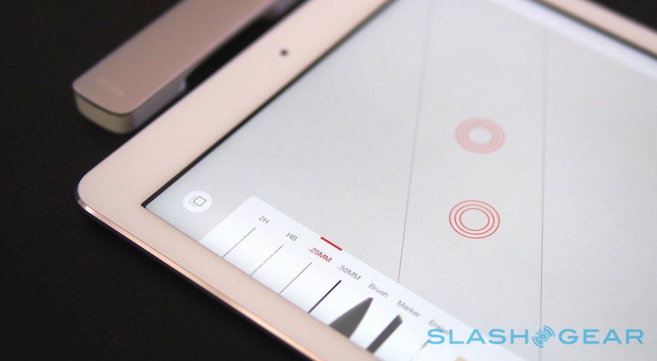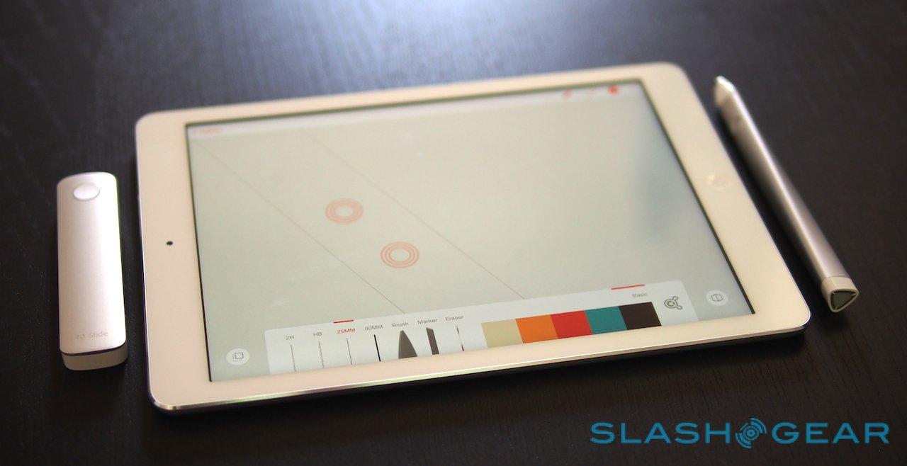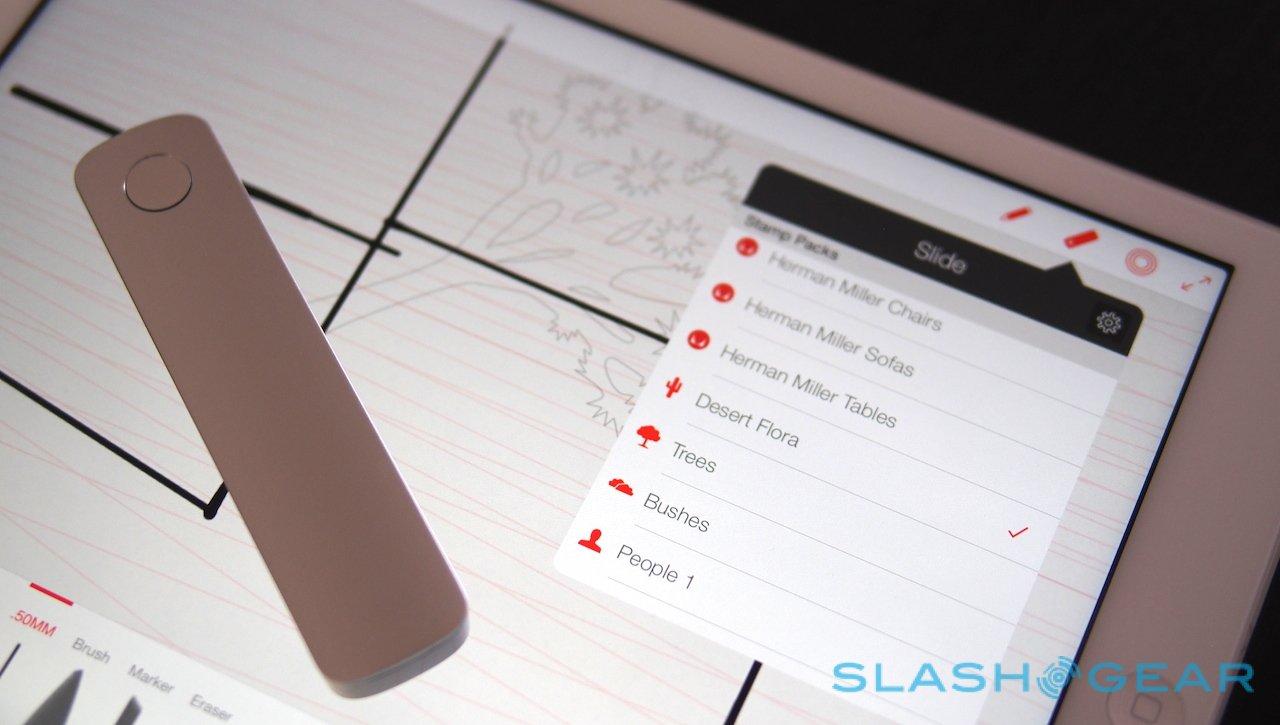 It takes a little getting used to at first, particularly in understanding that the line you draw follows Slide's guideline rather than where the nib itself is. On an iPad Air there's a little parallax to contend with, too, the offset between the nib and the digital ink, but adjusting between the various hand settings and toggling the palm rejection can help.